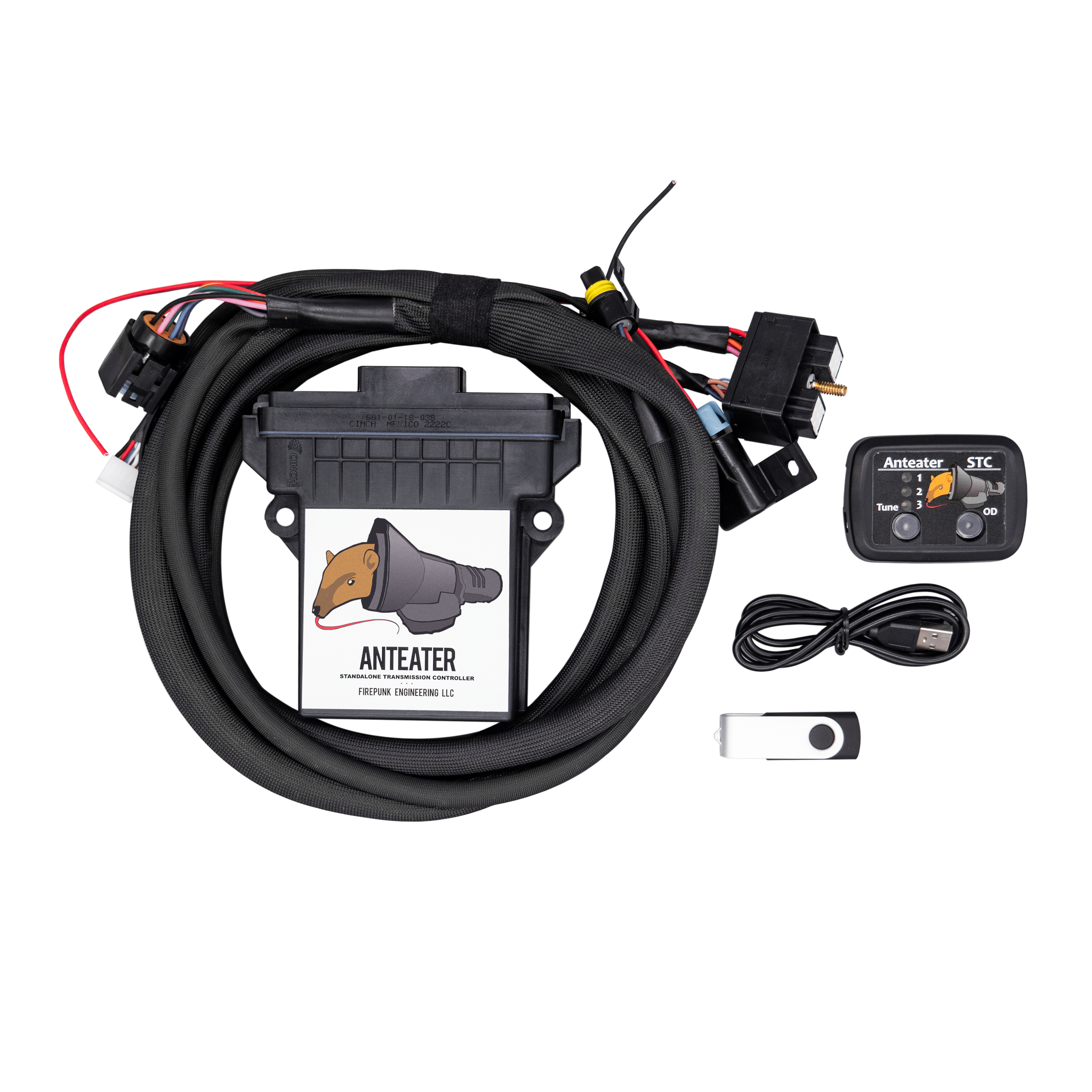 The Anteater is a controller for the 47-series and 48-series (618) Dodge Ram transmissions. It takes the place of a factory PCM and gives total control over the transmission's shift patterns. The main controller is contained in a weatherproof enclosure and the wiring harness exceeds OEM specifications. It also includes an in-cab wired remote that allows the end user to disable overdrive as well as choose between three separate shift tune tables. **47RH, 47RE, 48RE transmissions are all supported. All RE transmissions need to have the late style (2000+) valvebody harnesses. If you have the square plastic 4-pin pressure transducer, that’s the correct sensor. ******Please note 47RH support is limited to torque converter lockup and overdrive control. All 47RH units are made on a custom basis; contact with Firepunk is required before purchase.***** The conversion kit can be purchased using this link: 2000+ Electronics Kit For additional information visit: https://www.firepunk.com/anteater/ For a demonstration, instructions or help with the driver update check out our YouTube video at ANTEATER DRIVER UPDATE