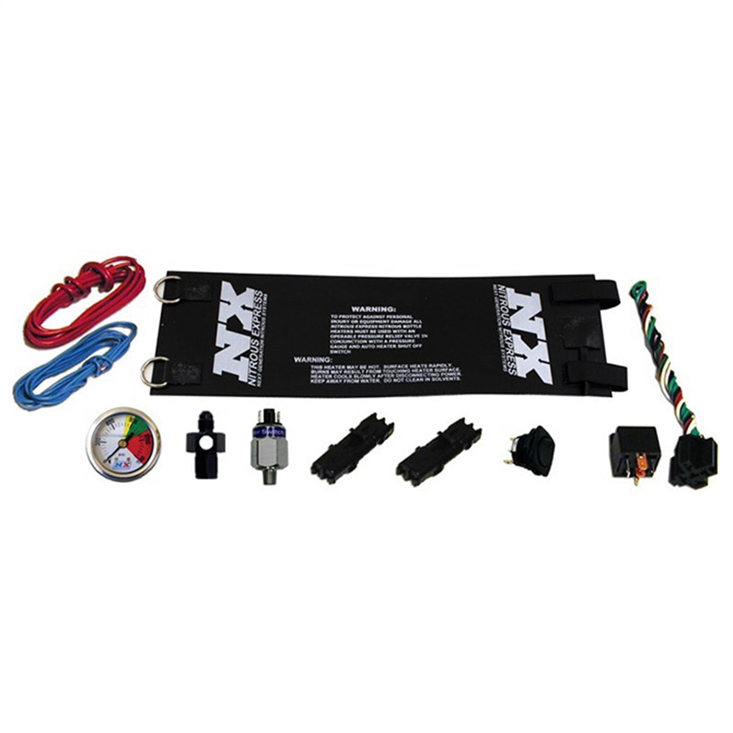 NX fully automatic bottle heaters are pressure controlled so you are always at the proper nitrous pressure. Heater element has surface temperatures above 300 degrees. This element can take a bottle from ice cold to operating pressure in minutes. Includes heater element, automatic pressure switch, HD 40 amp relay and harness, nitrous pressure gauge and a 4AN manifold.