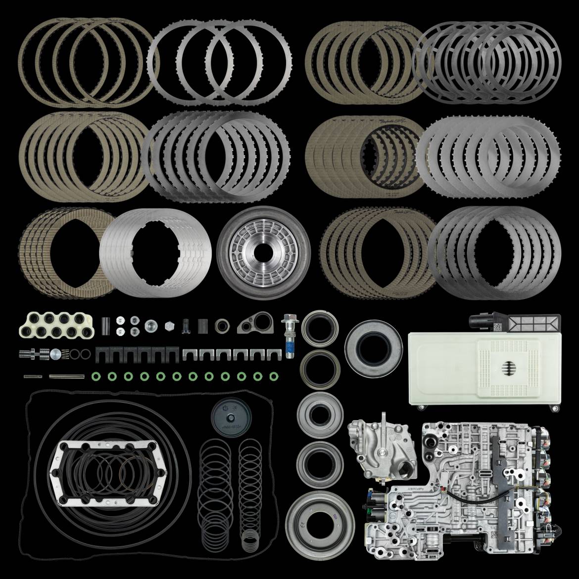 This Suncoast upgraded 10R140 transmission rebuild kit comes with new Raybestos GPZ clutches, steels, factory OEM filter and high performance overhaul kit.